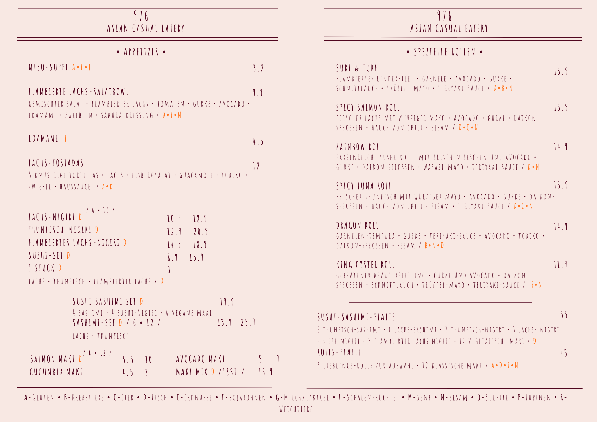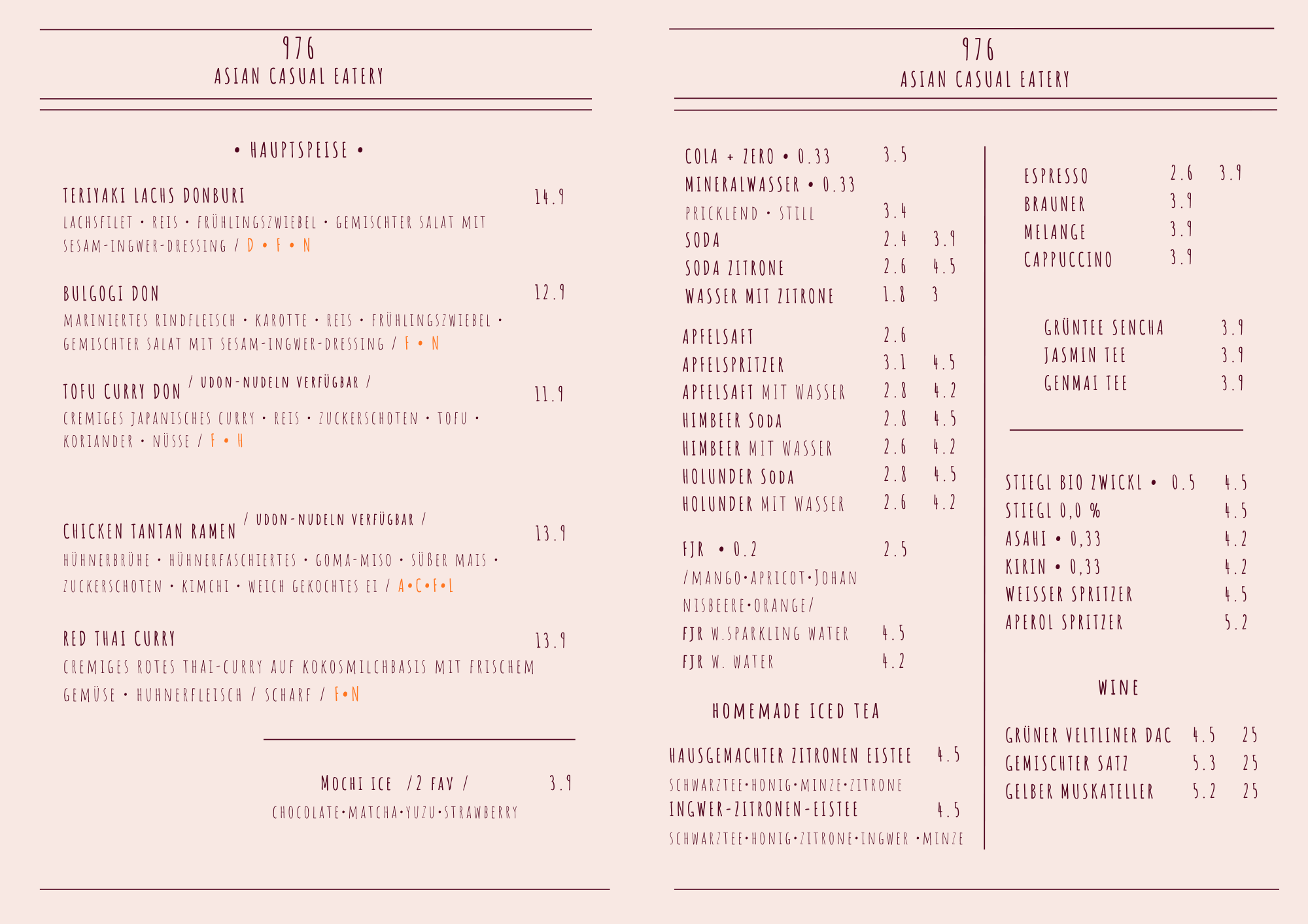 Minimalist design, seasonal ingredients, and warm wooden accents. At 976, we bring you the best of Asian food with our bold and satisfying dishes!